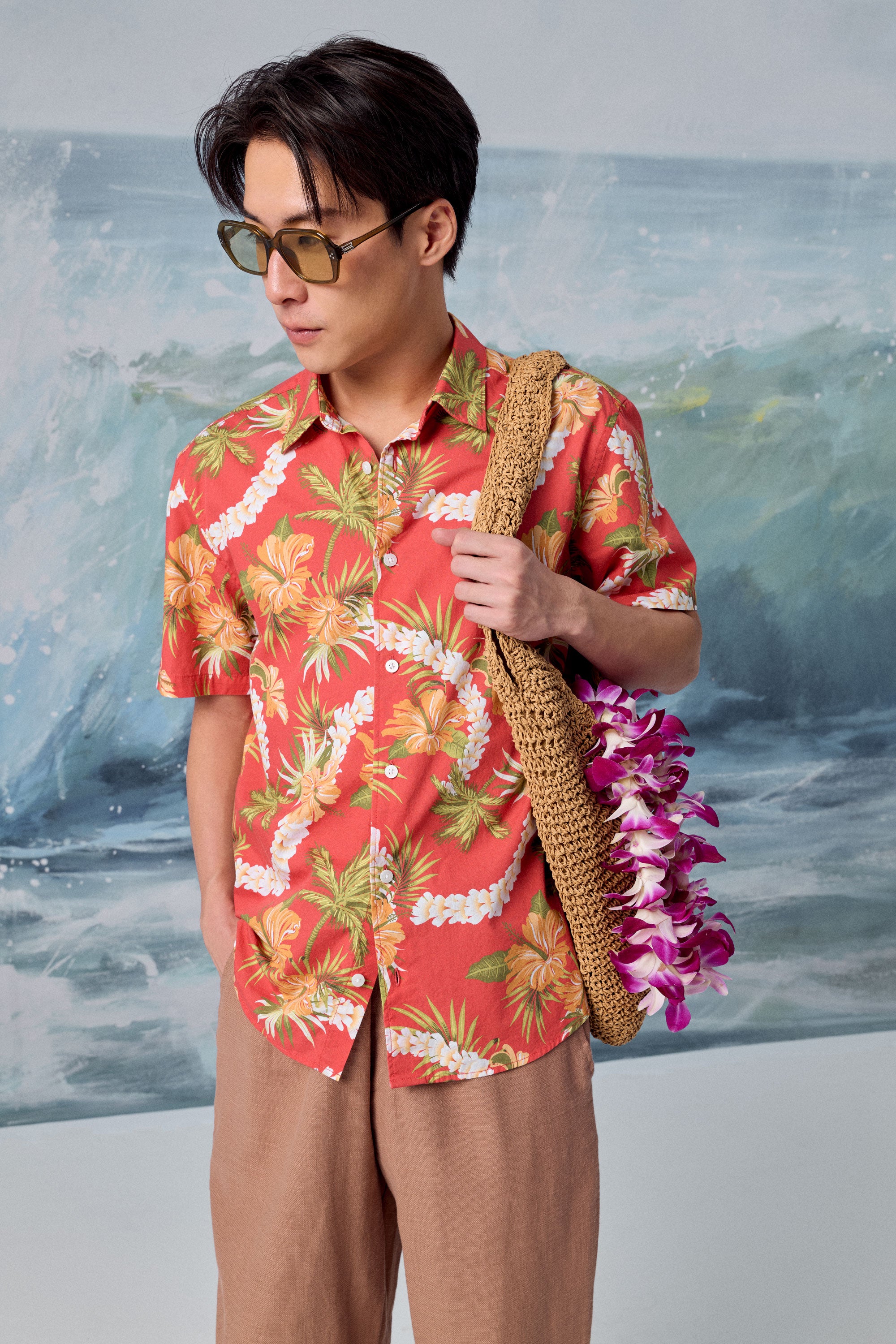 AIIZ Men’s Songkran Floral Short-Sleeve Shirt – 100% Rayon